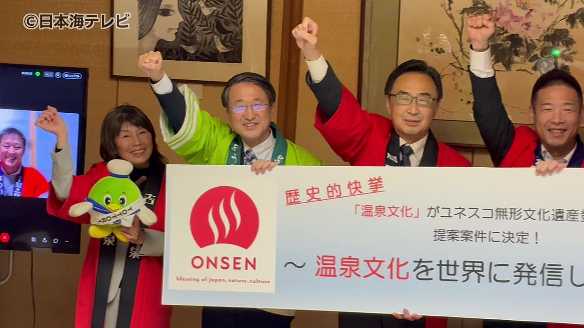 国連教育科学文化機関ユネスコの無形文化遺産登録への新たな候補として日本の「温泉文化」が選ばれたことを受け鳥取県内の旅館関係者が平井知事に報 …