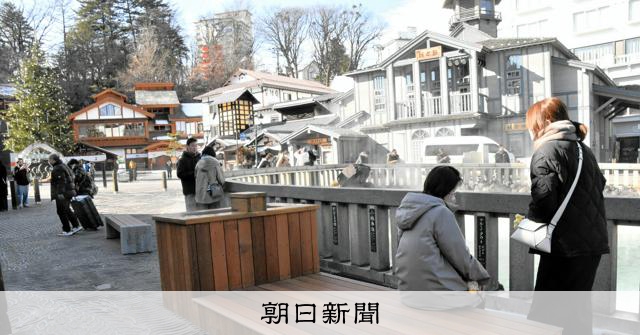 じんわりあったか「温泉ベンチ」 群馬・草津温泉の湯畑そばに登場 – 朝日新聞