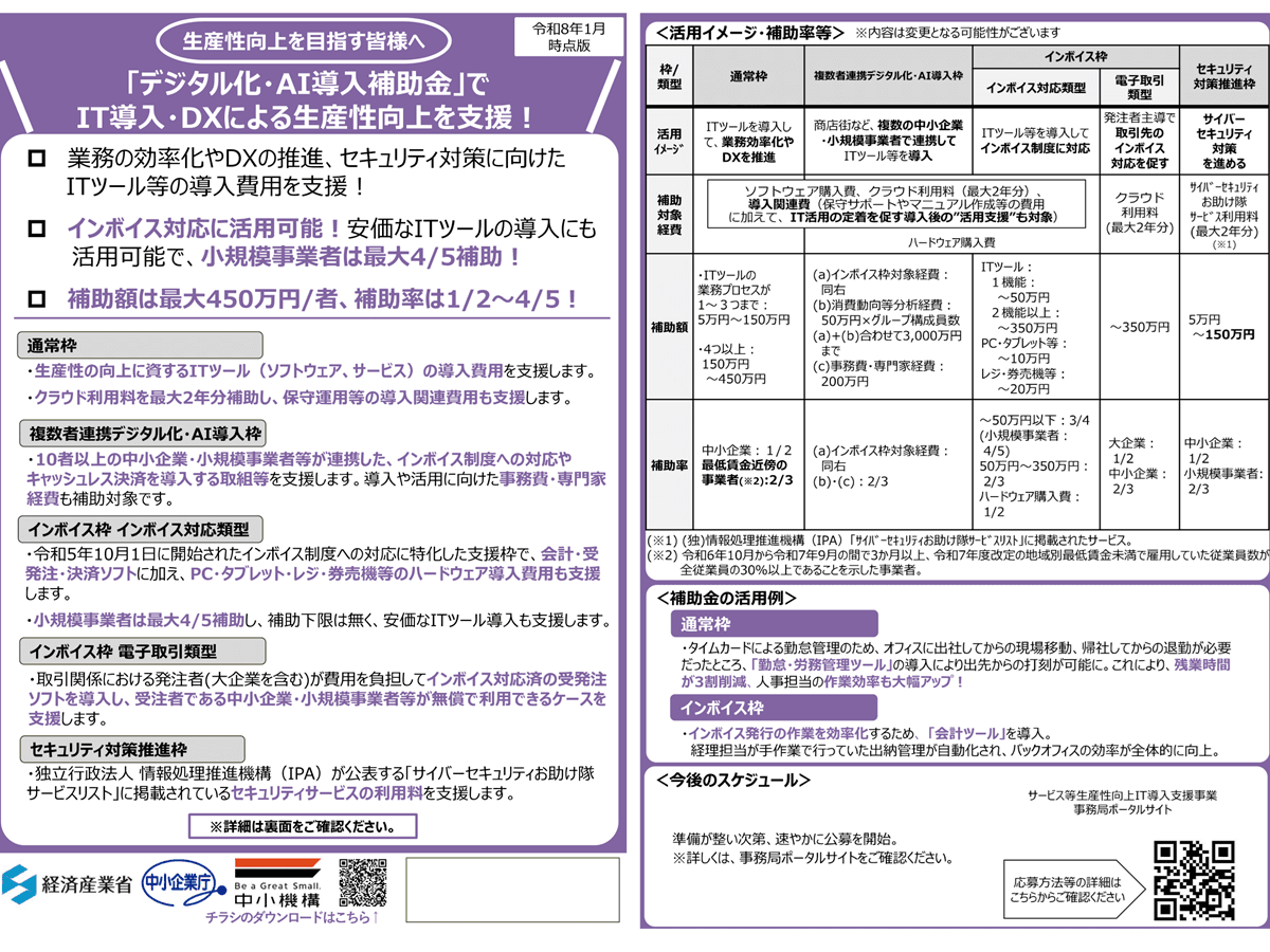 - デジタル化・AI導入補助金、2026年に公募開始へ ツール導入費も支援 | ツギノジダイ