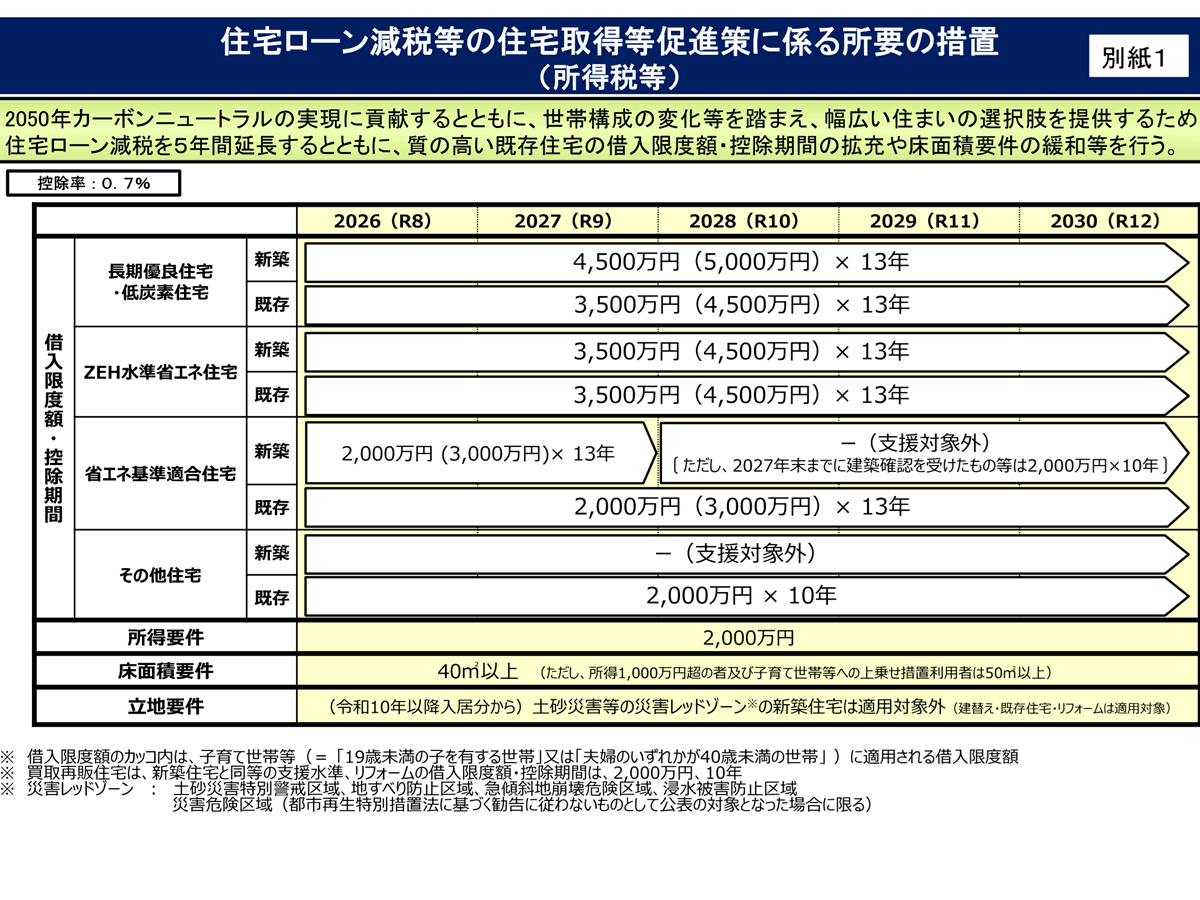 - 住宅ローン減税の5年延長・拡充、2026年1月から 控除率は0.7% | ツギノジダイ
