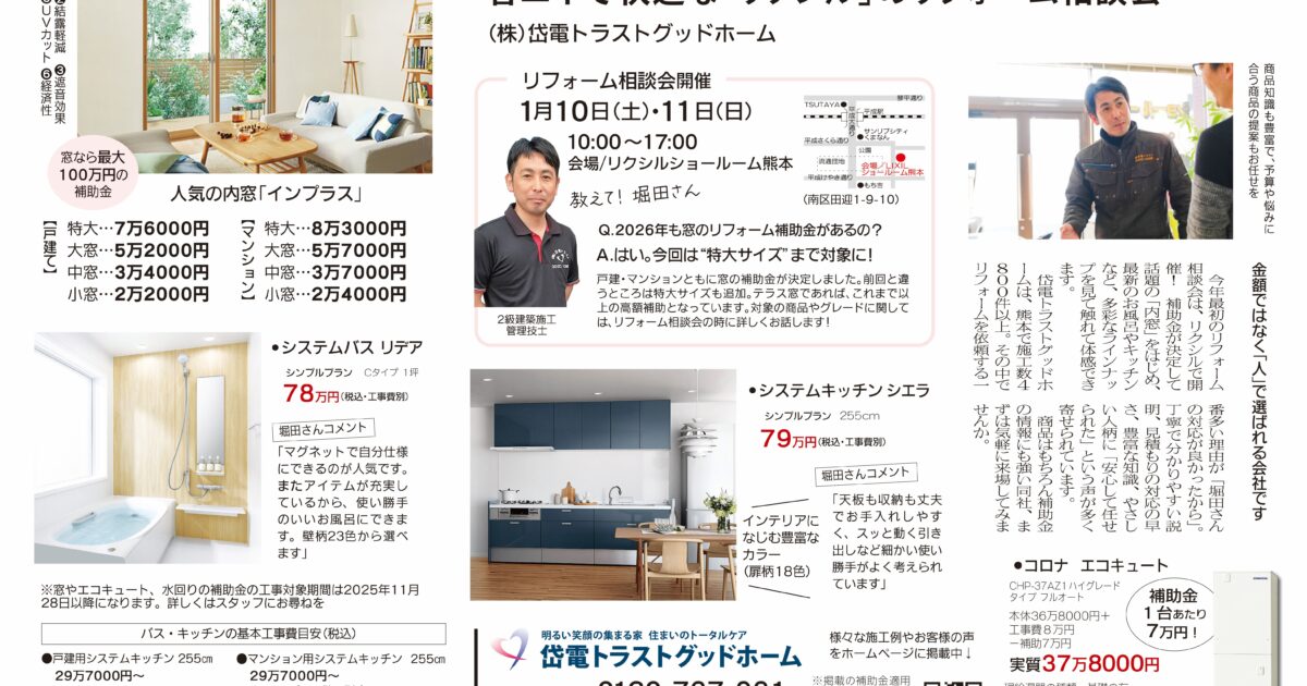 リクシルショールーム熊本でリフォーム相談会を開催します!今週号のリビング新聞にも掲載されますので、ぜひご覧ください!(^^)!≪内窓≫先進的窓リノベ2026 …