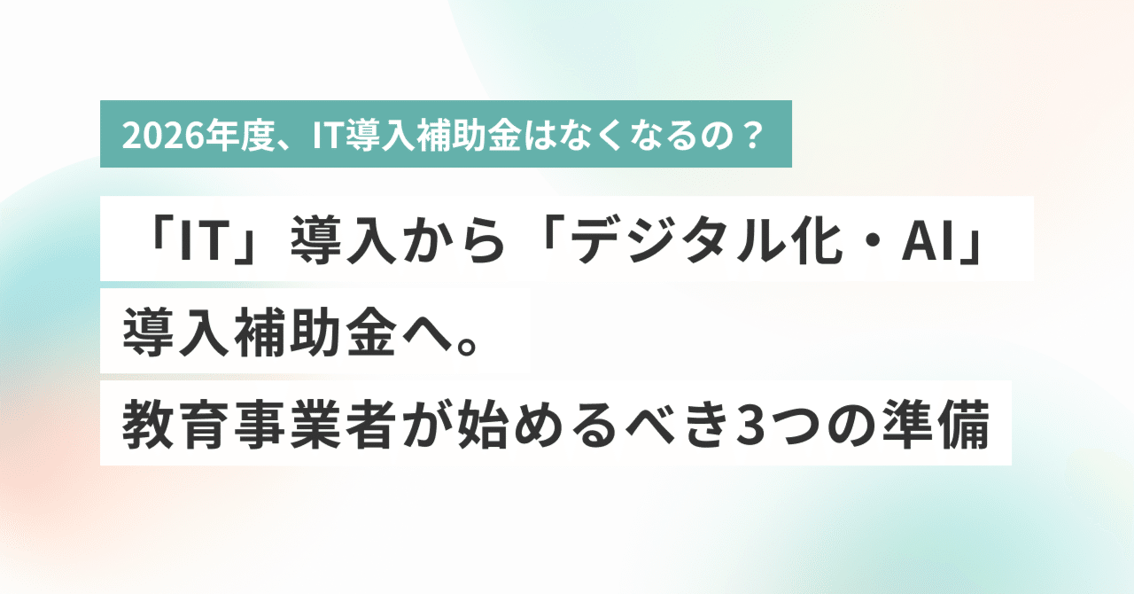 - 【2026年度 補助金予測】IT導入補助金から「デジタル化・AI導入補助金」へ。教育事業者が今すぐ ...