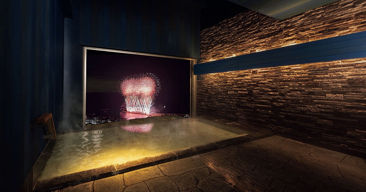 相模湾を一望する高台に建つ、全室オーシャンビューのリゾートホテル「リゾナーレ熱海」。温泉からの眺めも格別だ。 2025年にリニューアルした大浴場「熱海温泉 …