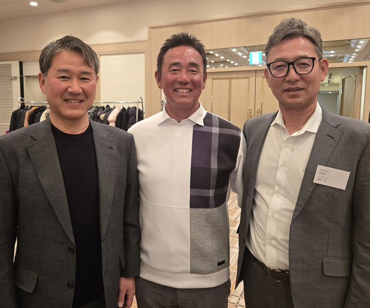 東京六大学同窓会で再会し、旧交を温めた元プロ3人。左から早大OB・三澤[元巨人ほか]、法大OB・副島[元ヤクルトほか]、明大OB・橿渕氏[元ヤクルト][写真=BBM …