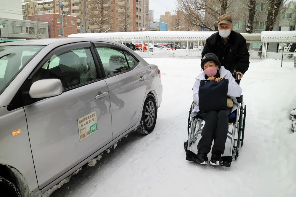#くらし文化 · #札幌市 · #コメントできます. 車いすの奥山敦子さんを病院へ送り届ける佐藤則夫 …