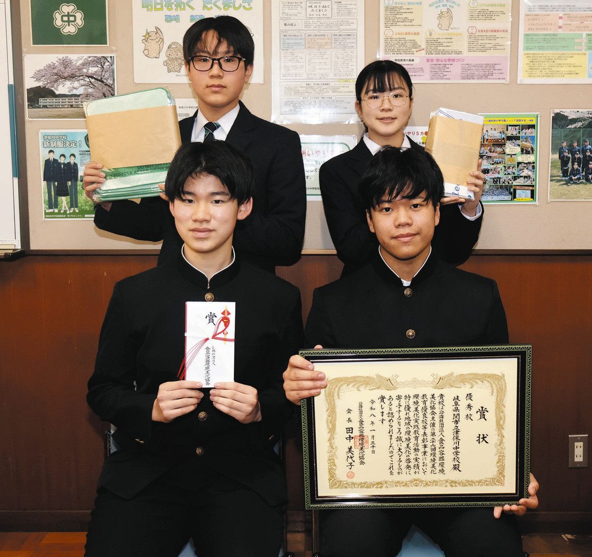 関・津保川中が環境美化教育優良校表彰で優秀校 関市津保川中学校が、地域の環境美化やリサイクルに貢献した学校をたたえる「環境美化教育優良...