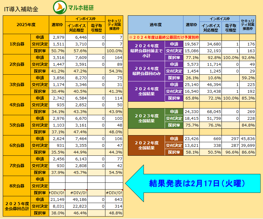 65. IT導入補助金2025 最終回8次公募の結果発表は2月17日です。