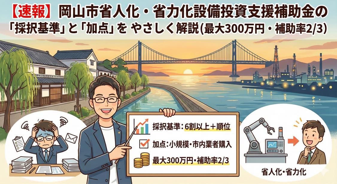 【速報】岡山市省人化・省力化設備投資支援補助金の「採択基準」と「加点」をやさしく解説 …
