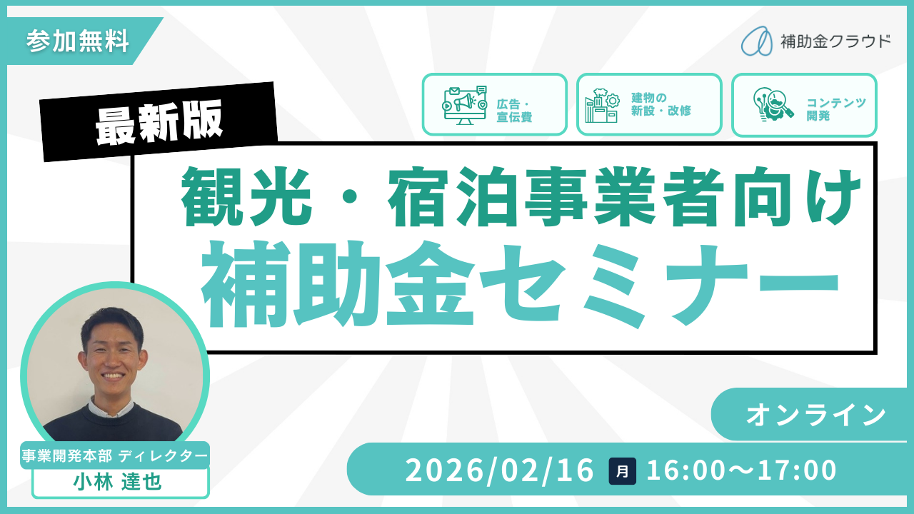 - 【2/16(月)16:00~17:00】観光事業者/宿泊事業者向け 最新補助金セミナーを開催 - PR TIMES