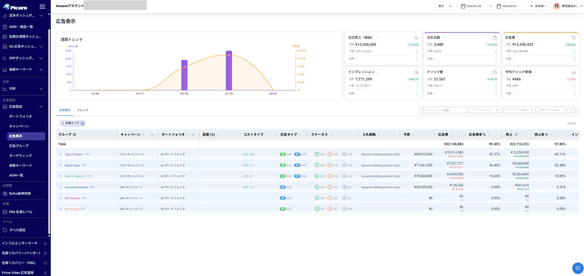 - 【新機能】Picaro.ai、Amazon広告の「掲載枠別」一元管理機能をリリース - PR TIMES