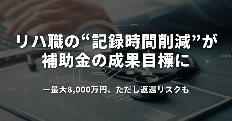 - リハ職の「記録時間削減」が補助金の成果目標に 最大8000万円、ただし返還リスクも