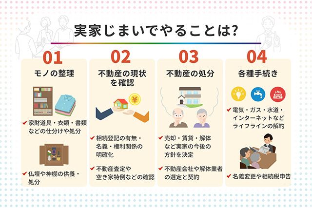 「実家じまい」とは、親の死去や高齢者施設への入居などにより空き家となった実家を、子ども世代が整理・処分することを指します。親の高齢化や、子世代が遠方で …