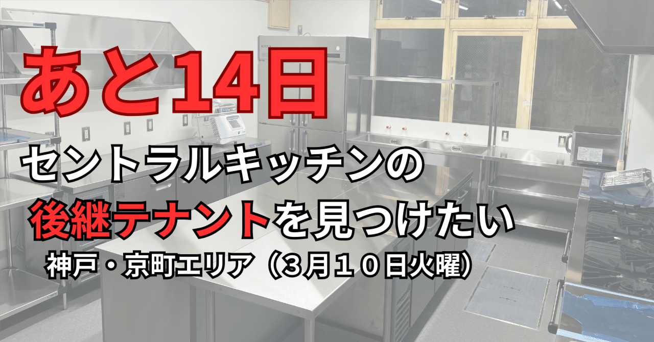 - 【拡散希望】あと14日でセントラルキッチンの後継テナントを見つけたい(3月10日火曜) - note