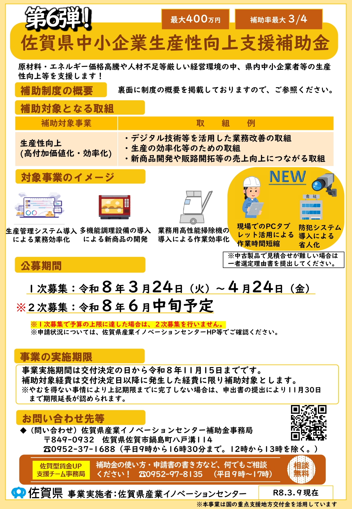 - 「第6弾佐賀県中小企業生産性向上支援補助金」の公募について - 上峰町商工会 - グーペ