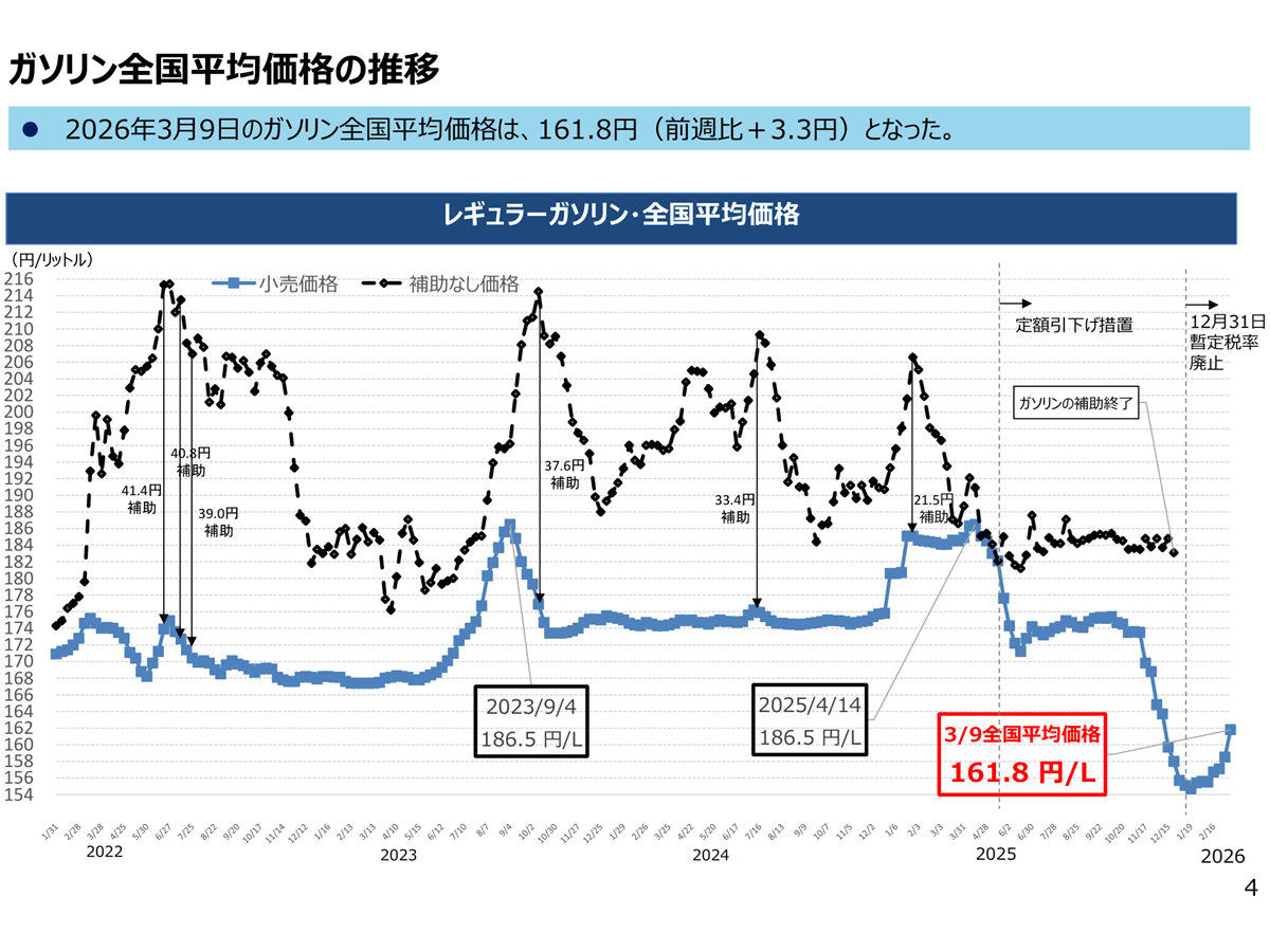 ガソリン補助金、2026年3月19日から再開へ 首相「170円程度に」 – ツギノジダイ