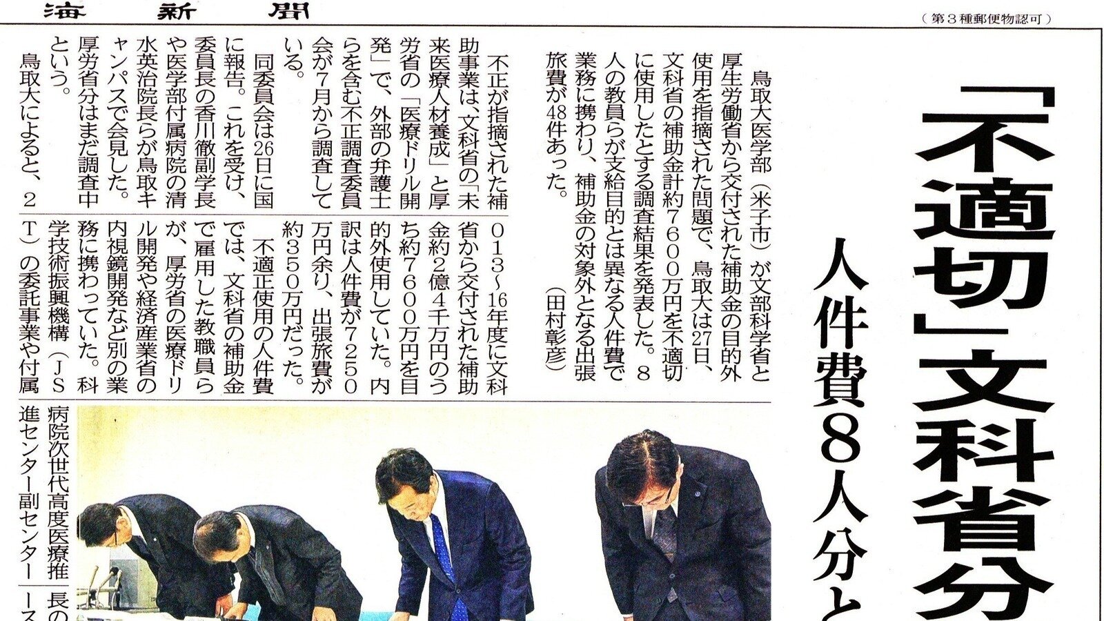 鳥取大学医学部附属病院が厚生労働省、文部科学省など複数の国や公的機関の補助金を流用し、目的外に使用していることを知りました。 私的な外国旅行・里帰り …