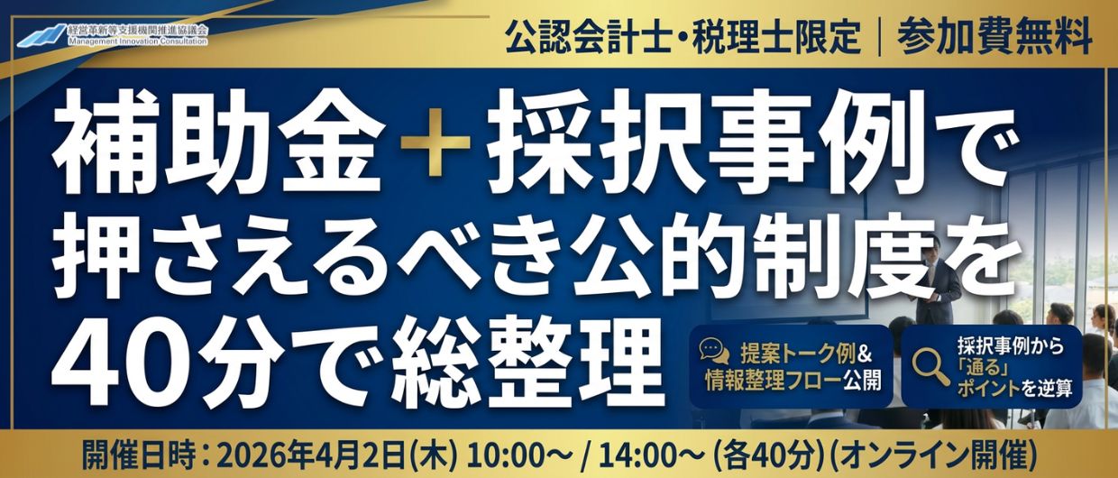 - 【無料ウェビナー】2026年3月26日(木)2026年度最新版でお届け!補助金×AI/DX‧新規事業 ...