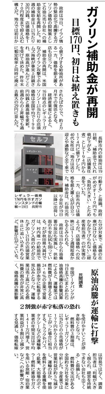 - ガソリン200円超え回避 | 株式会社 三陸新報社