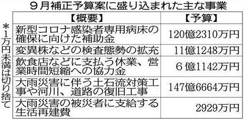 - コロナ対策や大雨復旧・復興費用を柱に、総額335億円 県補正予算案 - 中日新聞