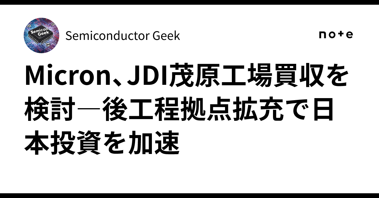 37. Micron、JDI茂原工場買収を検討―後工程拠点拡充で日本投資を加速|Semiconductor Geek