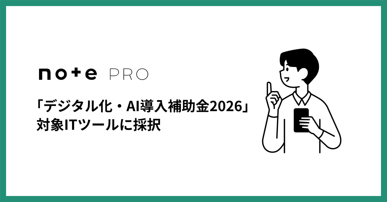 法人向け高機能プラン「note pro」が、昨年度の「IT導入補助金2025」に引き続き、経済産業省の推進する「デジタル化・AI導入補助金2026」の対象ITツール …