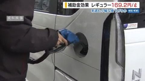 - 【ガソリン】レギュラー169.4円…前週から9.3円値下がり 補助金が店頭価格に反映されたか 翌週も ...