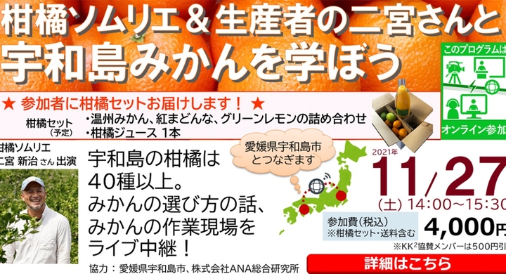 ◆食べて生産者を応援◆KK²食と文化講座『柑橘ソムリエ&生産者の二宮さんと宇和島みかんを学ぼう』