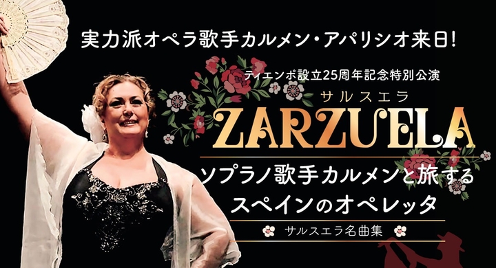 NPO法人 ティエンポ・イベロアメリカーノのプレスリリース(2023年1月11日 10時)。福岡を拠点に異文化交流活動をするラテン文化センター ティエンポ(所在地:福岡市中央区大名1-15-11 Daimyo11511ビル 3F、代表:サンティアゴ・エレーラ)の団体設立25周年を記念し、スペインからソプラノ歌手カルメン・アパリシオを招へいし、2023年2月11日 (土) 当団体館内のティエンポ・ホールにて、スペインのオペレッタ "サルスエラ" 名曲集を開催いたします。