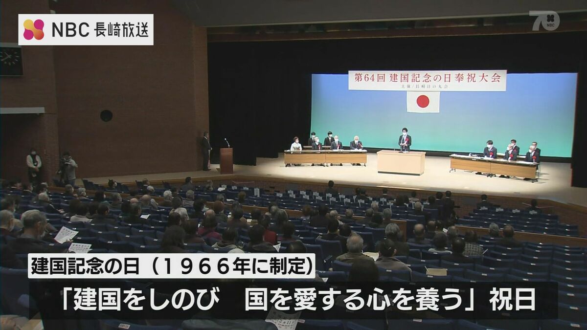 11日は建国記念の日です。長崎市では祖先に感謝し建国の日を祝う式典が3年ぶりに開かれました。長崎日の丸会が主催した奉祝大会には、老人クラブや自衛隊 …
