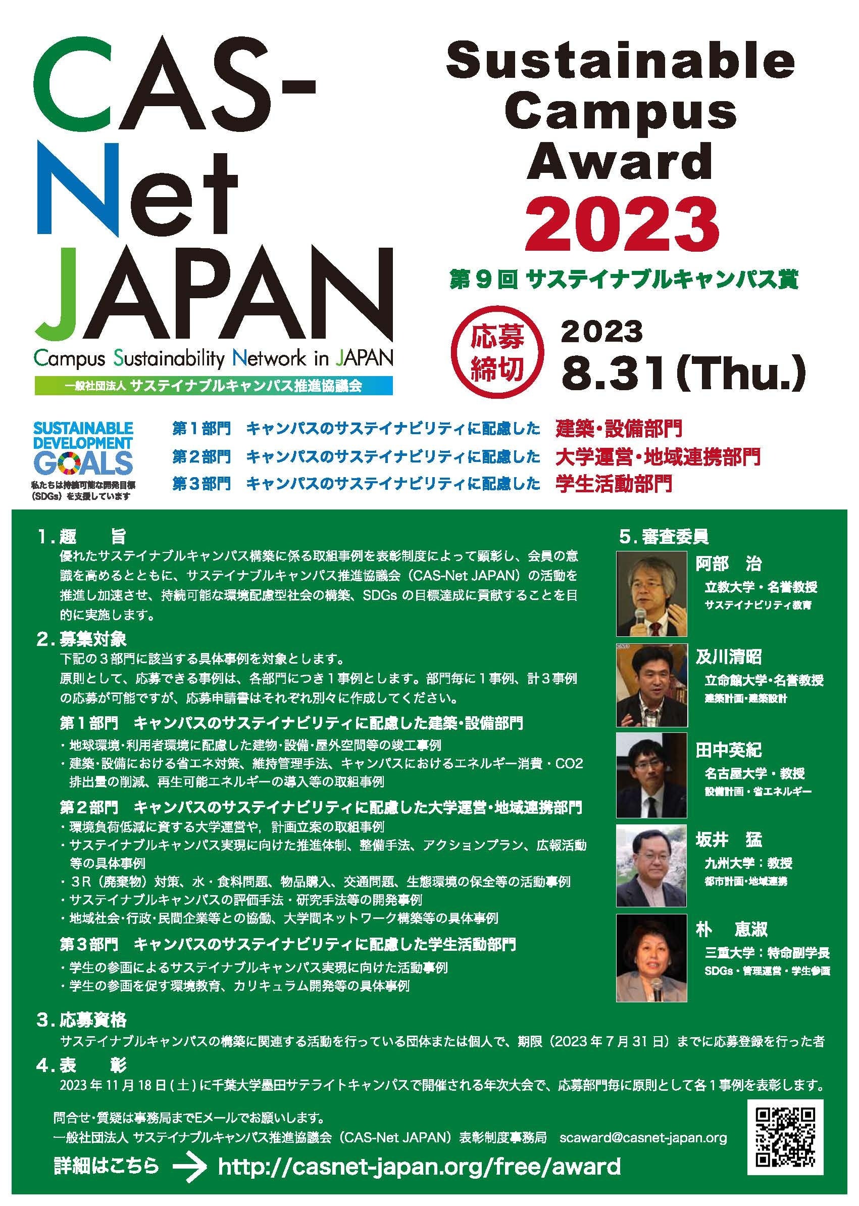 一般社団法人サステイナブルキャンパス推進協議会(CAS-Net JAPAN)は、大学・高等教育機関におけるSDGsやサステイナブルキャンパス構築に係る取組事例を表彰 …