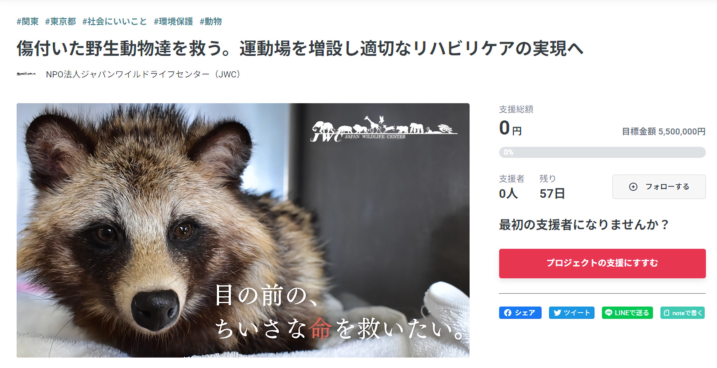 NPO法人ジャパンワイルドライフセンター(所在地:東京都町田市、代表理事:佐草和泉、以下「JWC」)は、クラウドファンディングサービス「READYFOR」にて、 …