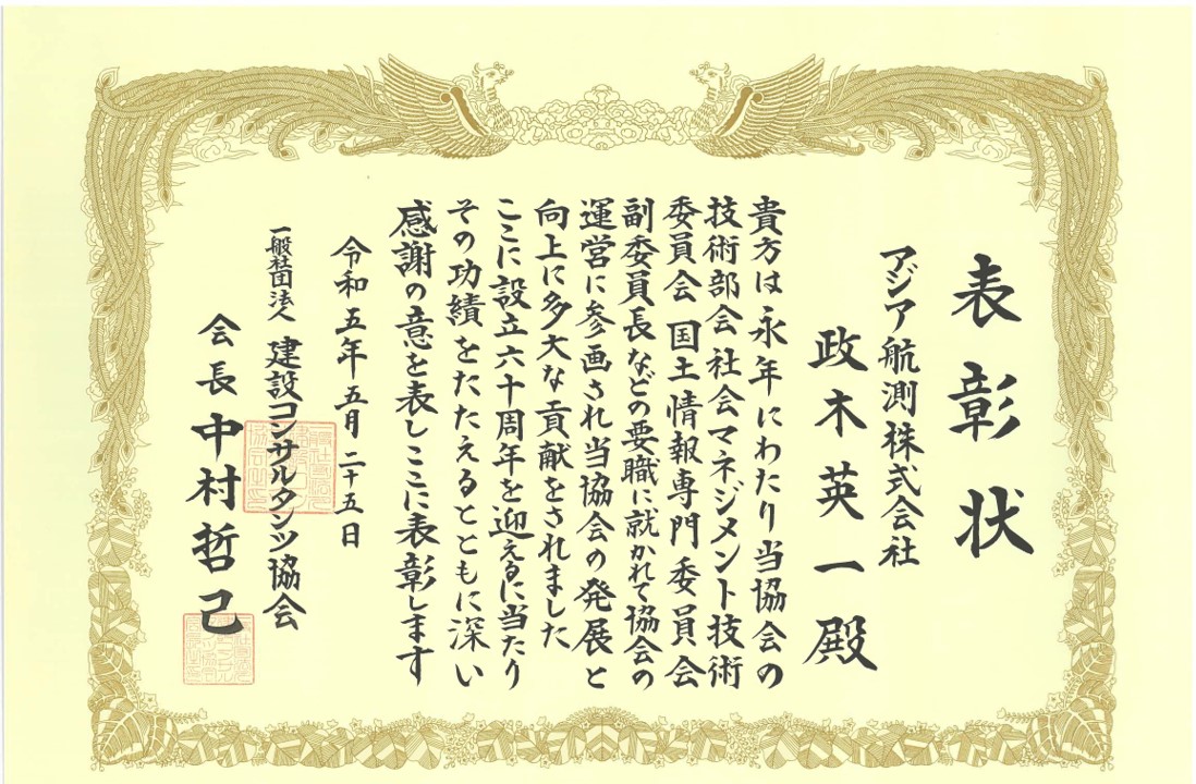 - 建設コンサルタンツ協会から表彰されました - アジア航測
