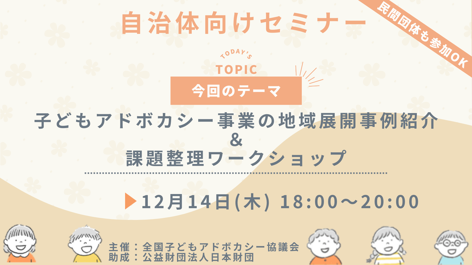 12/14(木)開催|子どもアドボカシー(意見表明等支援)事業の事例紹介・展開時の課題を一緒に考える自治体向けセミナーを行います!