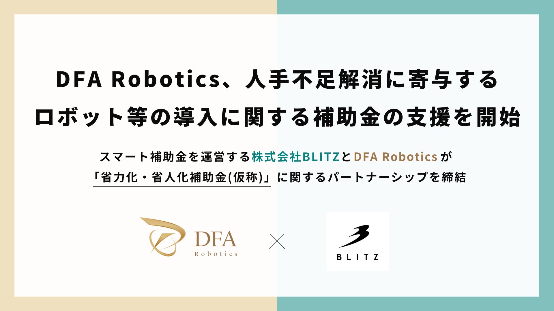 - 人手不足解消に寄与するロボット等の導入に関する補助金の支援を株式会社DFA Roboticsと開始