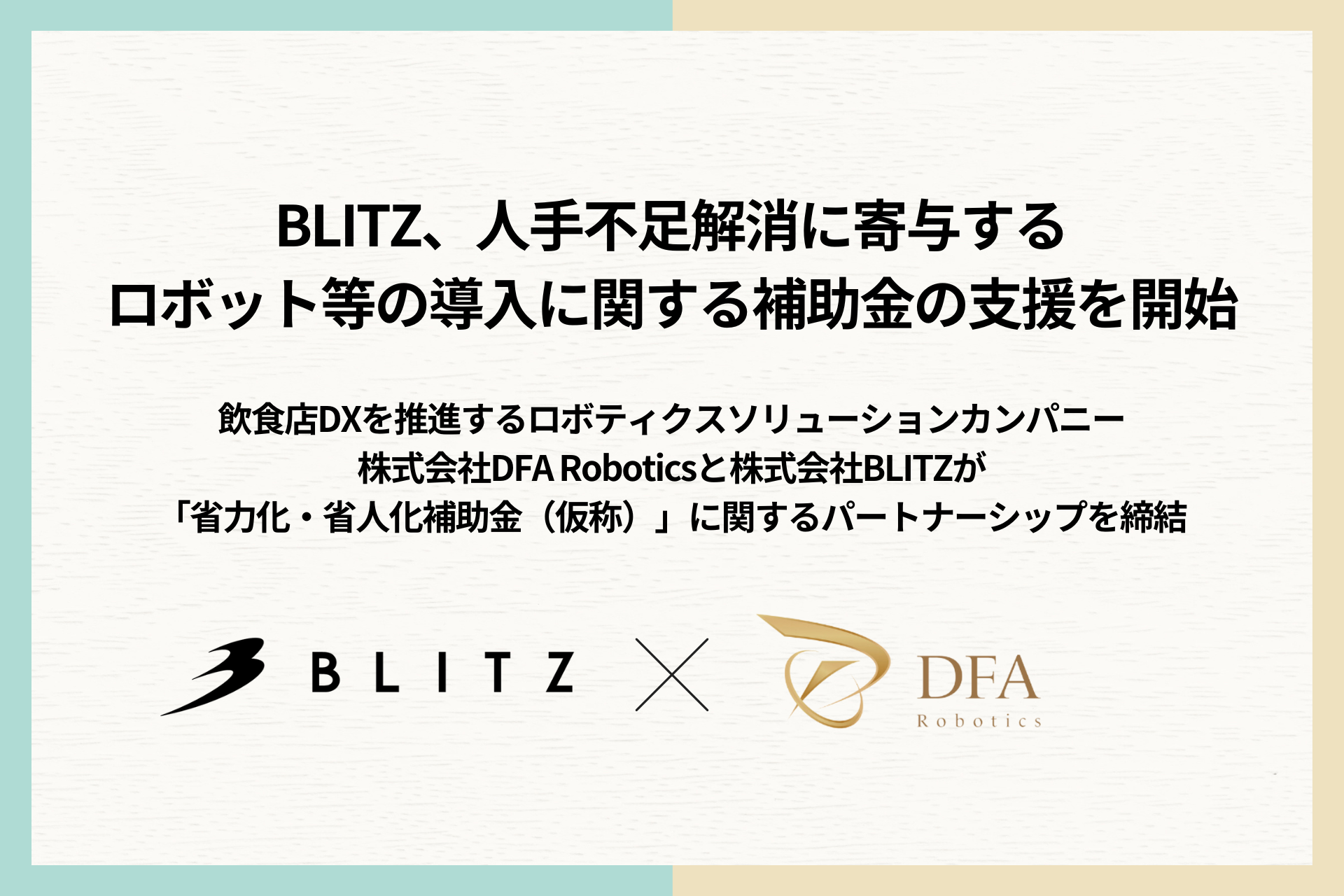 - 人手不足解消に寄与するロボット等の導入に関する補助金の支援を株式会社DFA Roboticsと開始