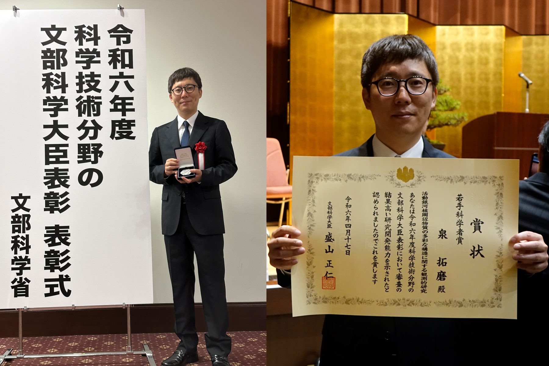 - 泉拓磨氏、令和6年度科学技術分野の文部科学大臣表彰 若手科学者賞をアルマ望遠鏡の研究で受賞