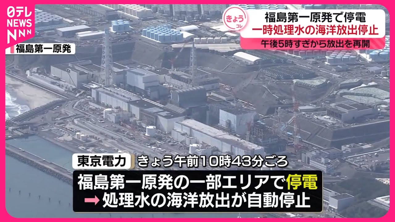 【福島第一原発で停電】処理水の海洋放出が一時停止 午後5時すぎから放出を再開 – YouTube