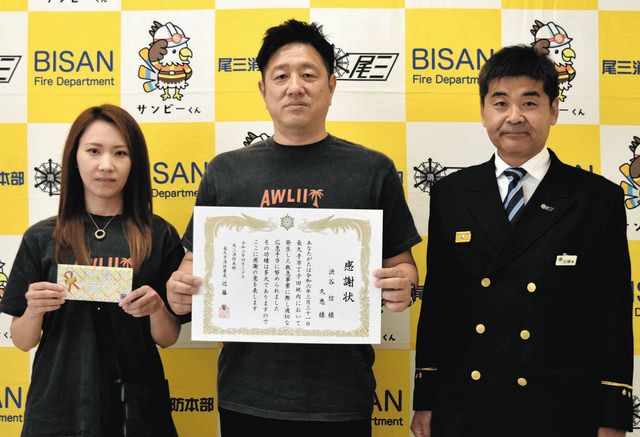 迅速な通報と救命で意識を失った男性の命を救ったとして、長久手消防署の近藤賢署長=写真(右)=は4月30日、名古屋市名東区の内装会社経営...