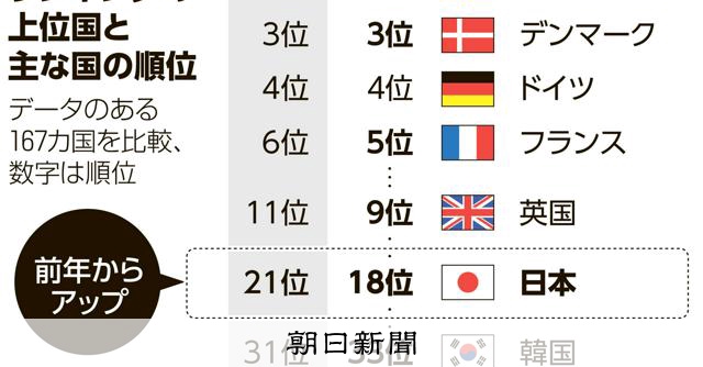 - 世界のSDGs達成度ランキング 日本は前年から三つ戻して18位 - 朝日新聞デジタル