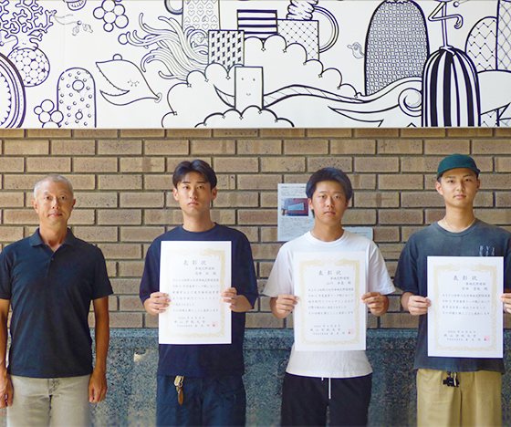 8月9日(金)学生支援課にて大学同窓会正課外活動顕彰制度の表彰式を行いました。 今回の被表彰者は、準硬式野球部に所属している学生3名です。