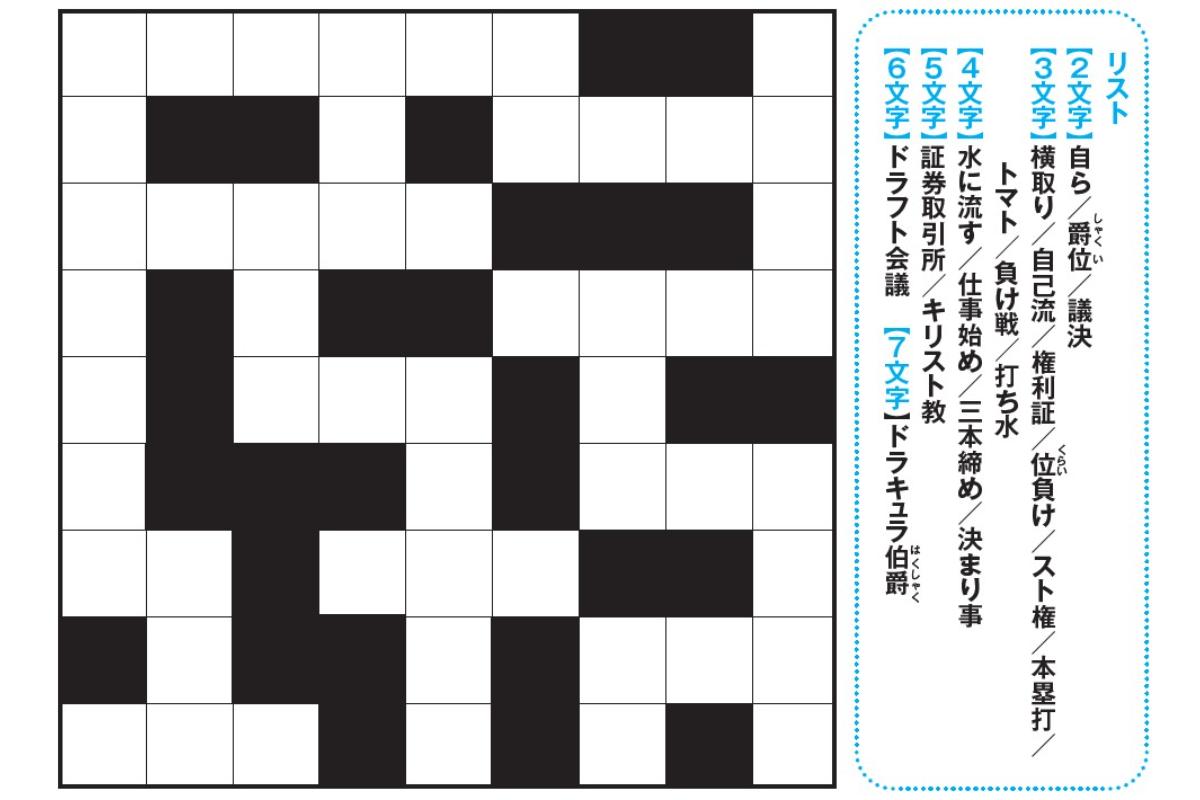 空欄のマス目の数をヒントにして、リストの中から当てはまる言葉を選び、書き込んでください。交差するマス目には同じ字が入ります。 文字数に合わせて適切 …