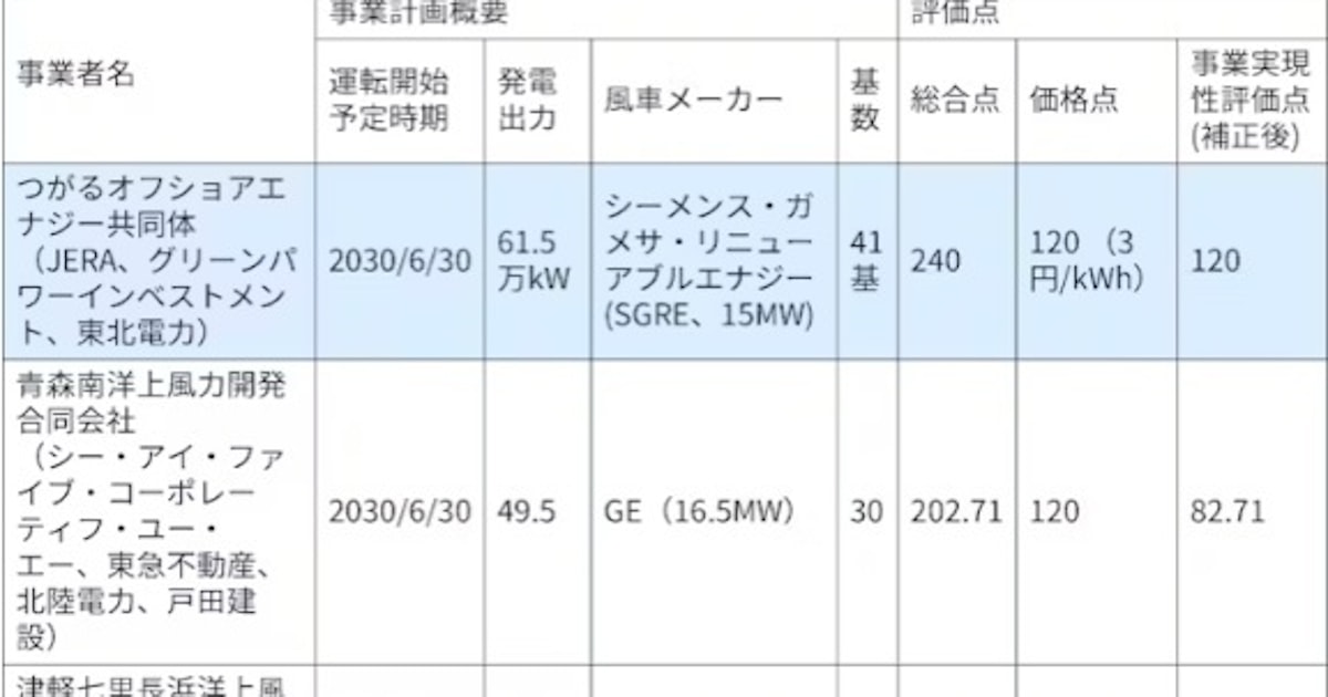 … 入札「ラウンド3」の結果を発表した。青森県沖は国内発電大手のJERA、山形県沖は丸紅を幹事社とする企業連合を選定した。両海域は再生可能エネルギー海域 …