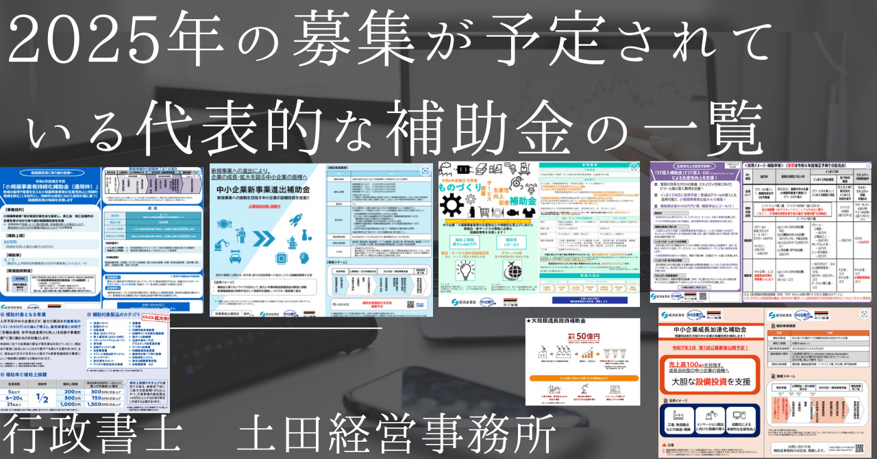2025年の募集が予定されている代表的な補助金の一覧|神奈川県川崎市補助金申請専門の行政書士 土田経営事務所 補助金、助成金、行政書士の解説記事置き場