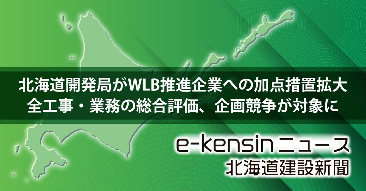 - 北海道開発局 WLB推進企業の入札加点措置を拡大へ