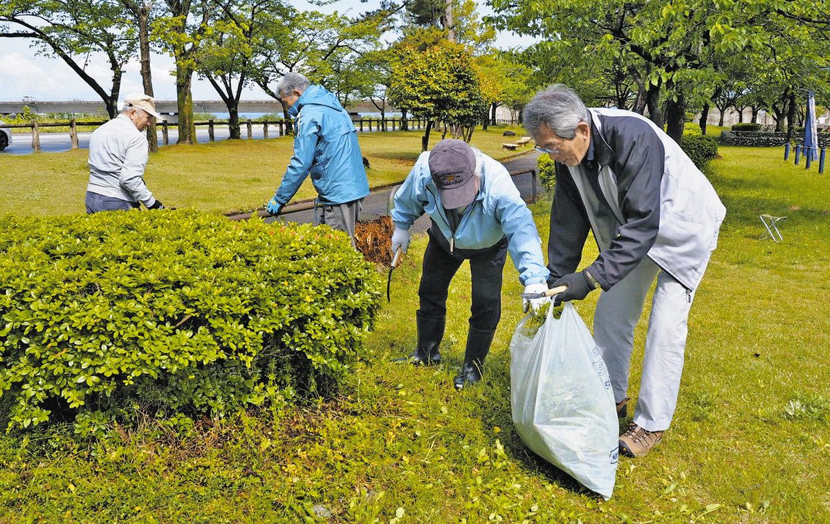 - 魚津老人クラブ連 いきいき美化活動 総合公園と天神山交流館 - 中日新聞