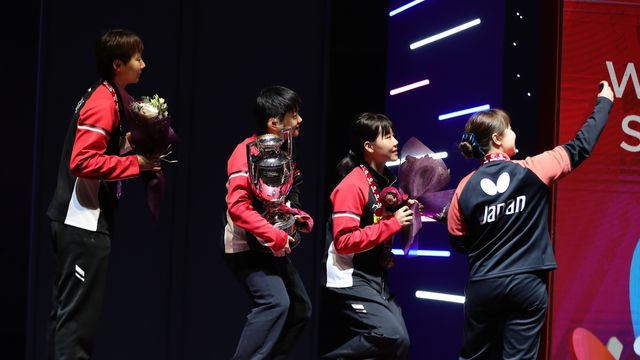 自身初のシングルスでのメダルとなりました。 表彰式では、優勝した世界1位の孫穎莎選手ら中国の3選手とともに出席。伊藤選手が“写真撮ろう”とばかり …