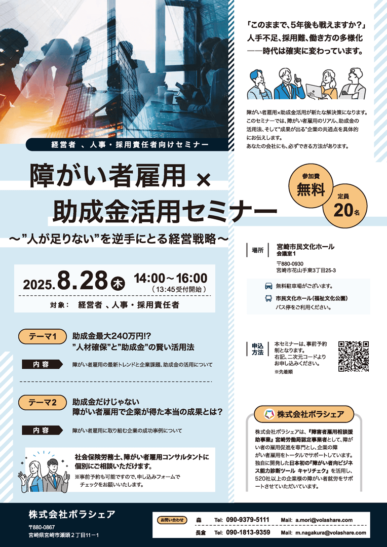 【企業・行政関係者 向】2025/8/28(木) 「障がい者雇用×助成金活用セミナー」開催のお知らせ | 株式会社ボラシェア
