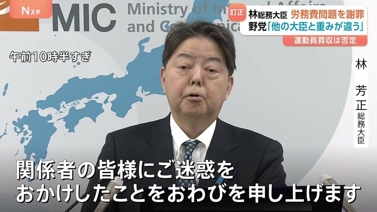 - 林総務相が謝罪…“不適切”労務費を収支報告書から削除処理で謝罪 買収など違法な事実ない ...