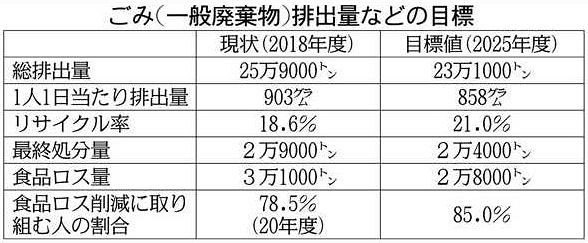 県民一人一日当たりのごみ(一般廃棄物)排出量について、県は二〇二五年度の目標値を八百五十八グラムと設定した。近年は九百グラム前後で推移 …