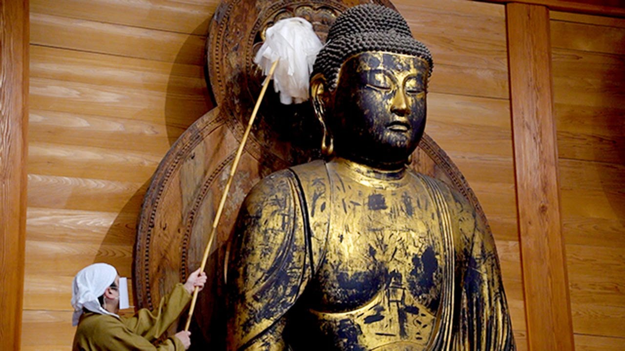「仏様もきれいなお姿で新年を」――。岩手県平泉町の中尊寺で17日、重要文化財などがある讃衡蔵(さんこうぞう)のすす払いが公開された。僧侶3人が薄い和紙のついた道具を使い、平安時代の仏像に積もったほこりを落とした。